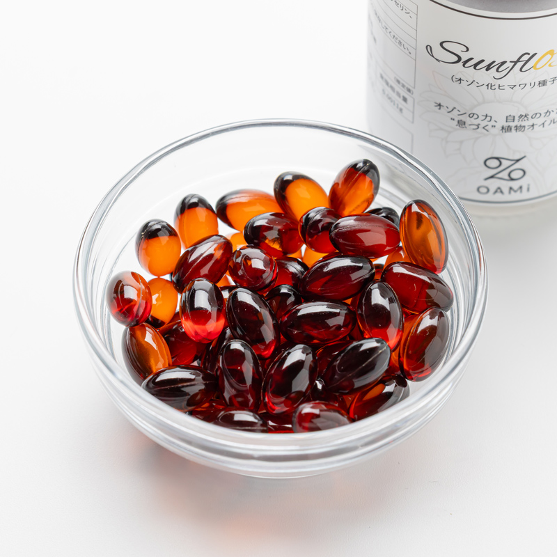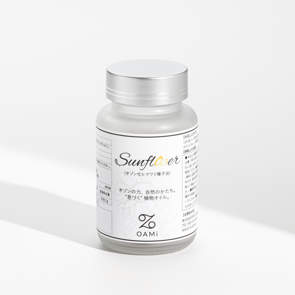 Sunflo3erは、植物油の中でも体内で作ることのできない必須脂肪酸(リノール酸)を豊富に含むヒマワリ種子油に着目し、さらに独自のオゾン処理技術を施したサプリメントです。美容や健康を意識する方や、年齢とともに変化を感じ始めた方の毎日の生活を内側からやさしくサポートします。